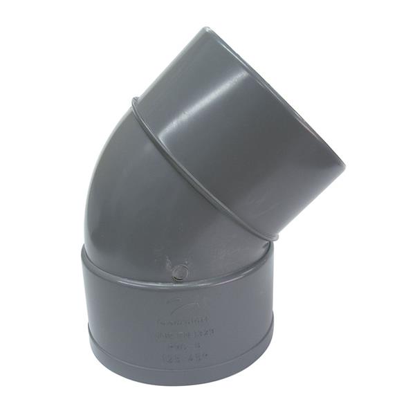 Gran resistencia química. Se adapta a las irregularidades del terreno y permite curvas. Resistencia a temperaturas entre -10ºC y +60ºC. Fabricada según norma UNE EN ISO 3994. Codo M-H 50-45º