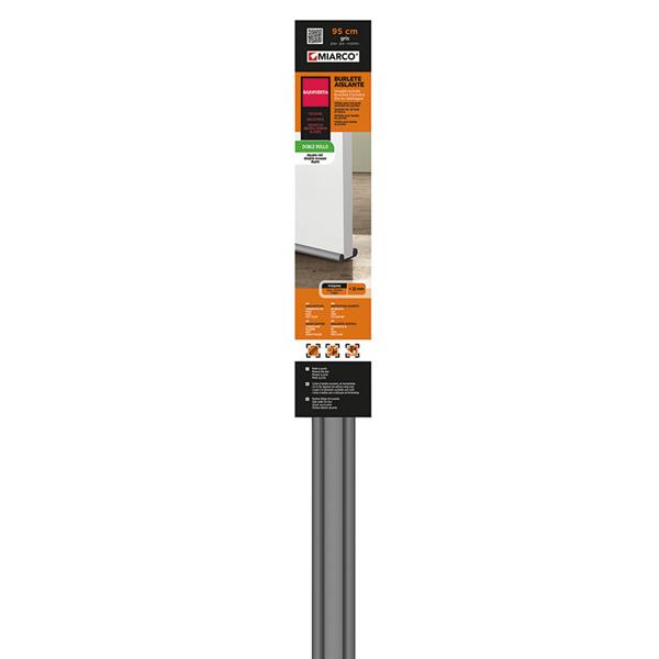 Polietileno. Fácil de colocar. Reduce variaciones de temperatura ahorrando energÃa y manteniendo el confort de la casa. Detiene corrientes de aire. Evita la entrada de suciedad, como el polvo. Colocación sencilla debajo de la puerta. 95 cm x 25 mm. Gris.