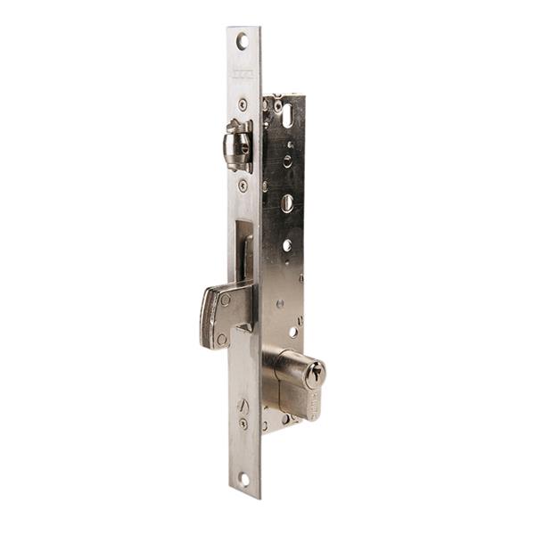 Palanca-gancho basculante. Golpe vaivén regulable y llave. Frente inoxidable. Entrada 20 mm.
