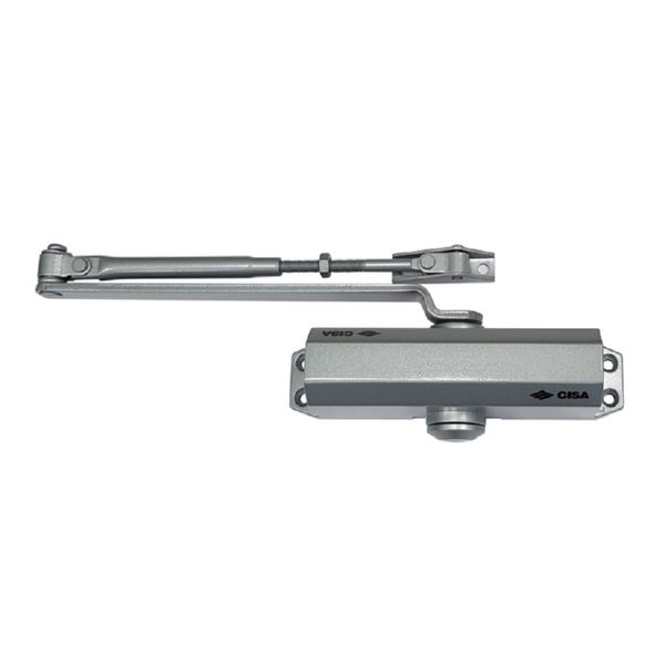 Multifuerza EN 2-4. Velocidad de cierre regulable mediante válvula. Para puertas de ancho máximo 1.100 mm. Sin retenedor. Plata.