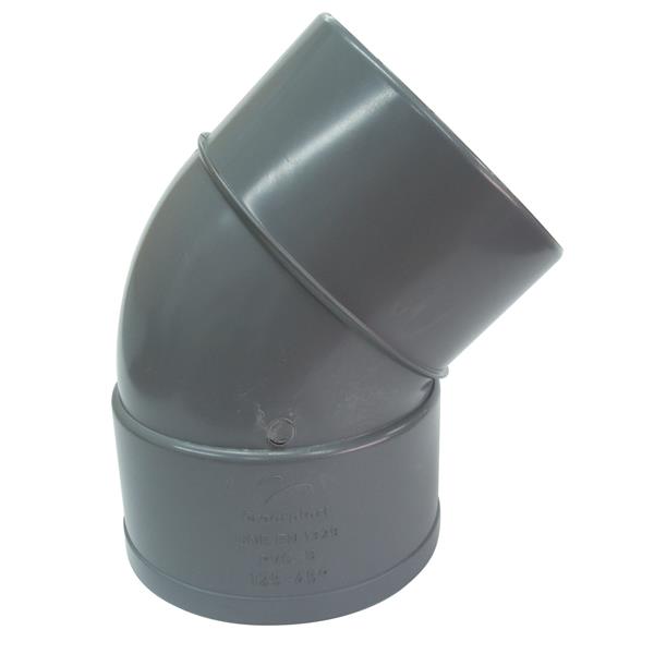 Gran resistencia química. Se adapta a las irregularidades del terreno y permite curvas. Resistencia a temperaturas entre -10ºC y +60ºC. Fabricada según norma UNE EN ISO 3994. Codo M-H 110-45º