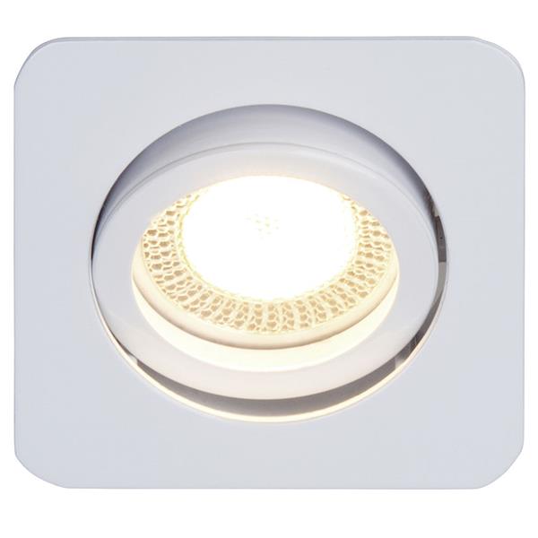 Metal satinado. Easy clip: fácil colocación. IP23. Ángulo 90º. (Bombilla no incluida). 82x82 mm. Color blanco.