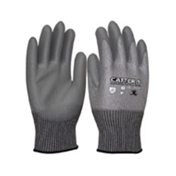 Poliester/fibra de vidrio, sin costuras con recubrimiento de PU en la palma. Color gris. Alta resistencia al corte, abrasión y desgarro. Excelente agarre en seco y húmdo. Uso: automóvil, vidrio, reciclado, embotellado y envasado, etc. Talla 8