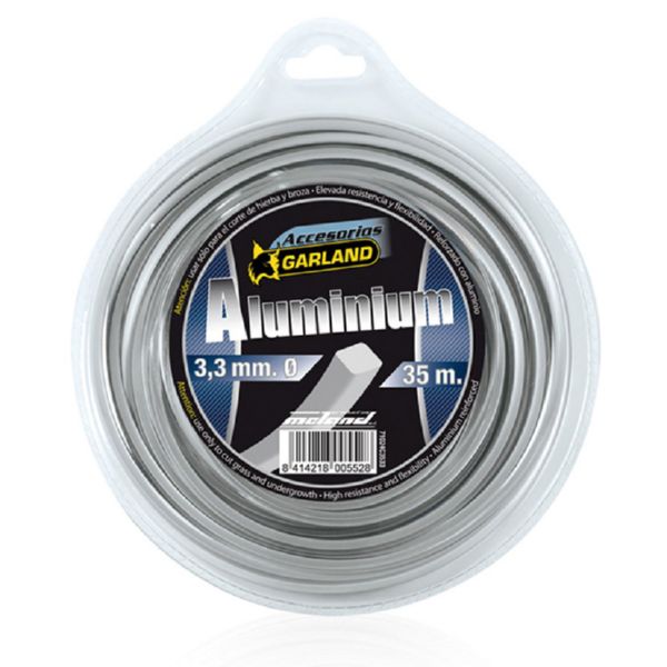 Cuadrado con partículas de aluminio. Uso universal para desbrozadora de más de 30 cc. Máxima resistencia y duración. Ø 2,7 mm x 54 m.
