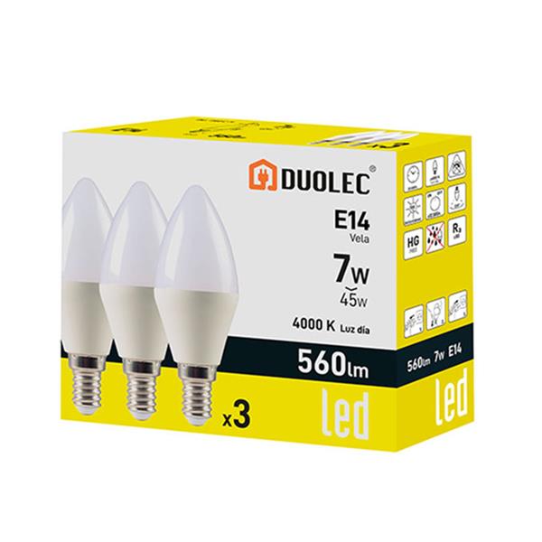 {imagen-envio-gratis-pdf} {imagen-outlet-pdf} {imagen-oferta-pdf} PACK 3 VELA LED DUOLEC 7W 4000K 560LM Ref: 9160C74 EAN: 8412372787663 5.33€IVA incluido Envio en 24/48 horas Calidad y garantía Pago 100% seguro Garantía de devolución {enviar-amigo-pdf} {imprimir-pdf-pdf} Stock: Unidades de caja: 1.00 ¿Necesitas ayuda?967 141 344 Estaremos encantados de atenderte en lo que necesites. características 7 W. 560 lm. E14. 4000K. ø 102x37 mm.