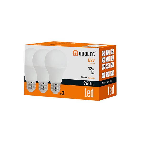 {imagen-envio-gratis-pdf} {imagen-outlet-pdf} {imagen-oferta-pdf} PACK3 STAND. LED DUOLEC 12W 3000K 960LM Ref: 9160C79 EAN: 8412372787687 7.44€IVA incluido Envio en 24/48 horas Calidad y garantía Pago 100% seguro Garantía de devolución {enviar-amigo-pdf} {imprimir-pdf-pdf} Stock: Unidades de caja: 1.00 ¿Necesitas ayuda?967 141 344 Estaremos encantados de atenderte en lo que necesites. características 12 W. 960 lm. E27. 3000K. ø 110x60 mm.