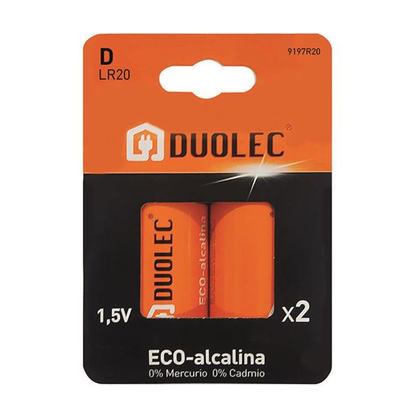 Ecol?gicas. 0% mercurio, 0% cadmio. Ideal para dispositivos de alto consumo. D LR20 1,5 V. 2 unid.