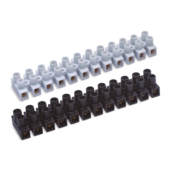 Tornillos imperdibles y montaje alto para facilitar la conexión. Fácil separación de los polos de forma manual. Polipropileno. Homologación EN 60998-1:2004, EN 60998-2-1:2004. RoHS y VDE. Pack de 10 unidades con 12 conexiones cada una. Sección 0,5 - 4 mm². 32 A. Negro.