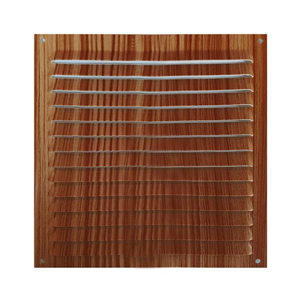 Aluminio. Grosor plancha 0,8 mm. Sin pestaña lateral. Uso dom Madera oscura. Con mosquitera. 15x15 cm. Paso de aire 37,5 cm².