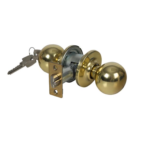 Llave exterior y pomo interior giratorio libre. Picaporte regulable 60-70 mm. Latón pulido.