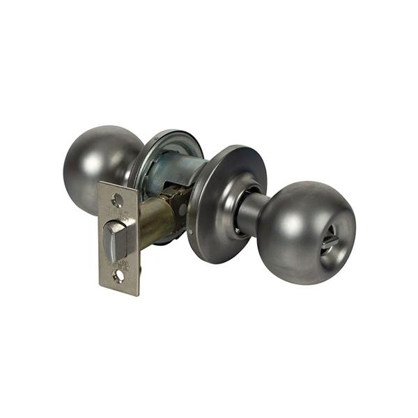 Sin llave, condena interior y dispositivo de emergencia exterior. Picaporte regulable 60-70 mm. Cromo mate.