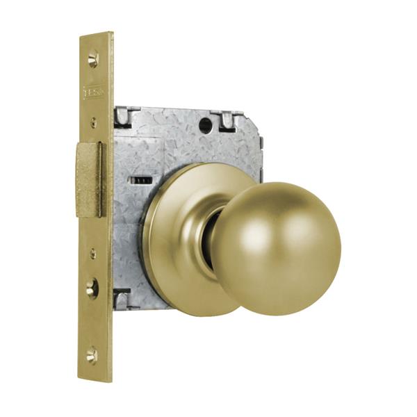 Puerta de entrada. Golpe y llave. Pomo interior reversible. Entrada 50 mm. Latón pulido