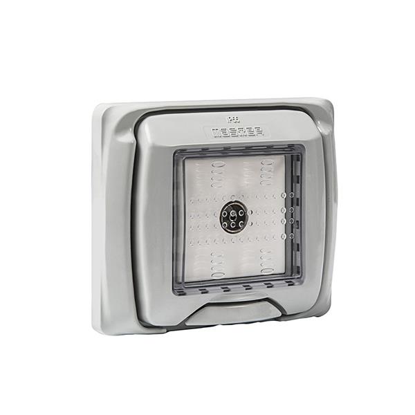 La cubierta transparente con protección IP55 garantiza un sellado eficaz en exteriores,. ofreciendo un diseño versátil que se adapta a todo tipo de entornos. Toma TV.