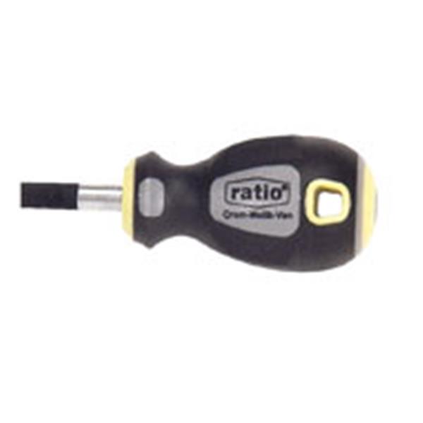 Varilla acero cromo-vanadio-molibdeno, DIN 5262/5265. Punta negra magnética. Mango antideslizante bimaterial. Titular. Texto. Boca Plana 1,2 x 6,5 x 25 mm.