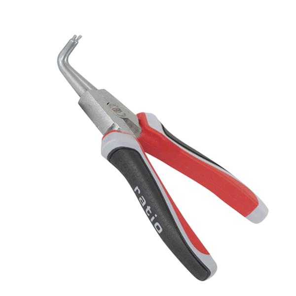 Acero cromo-vanadio satinado. Tratamiento de inducción en zonas de corte. Mango antideslizante bimaterial. 175 mm. Exteriores. Puntas curvas