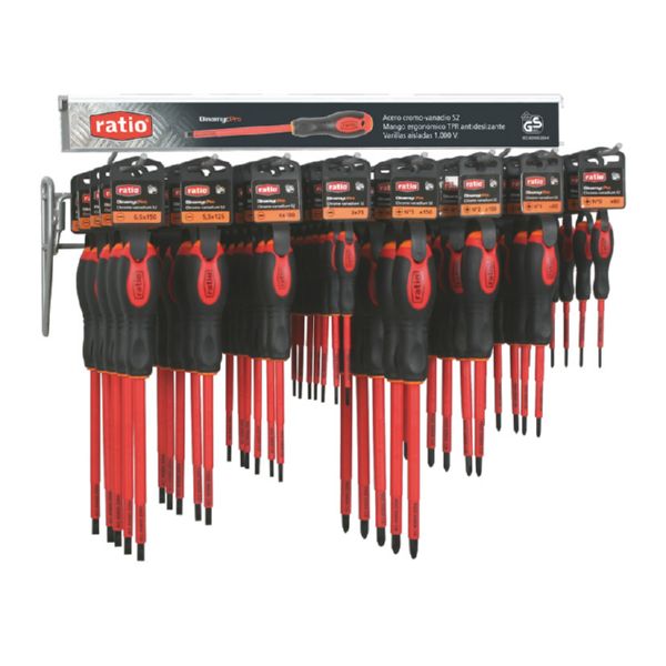 Varilla acero cromo-vanadio S2 con tratamiento de endurecido térmico. Aislado para baja tensión hasta 1.000 V. Punta magnética. Mango antideslizante bimaterial. Norma IEC 60900:2004. Boca phillips Nº 3 x 150 mm.