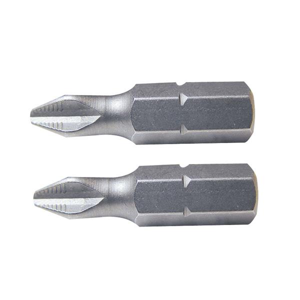 Puntas 25 mm. Hexágono 6,35 mm. Acero cromo-vanadio S2. Dureza 59 - 61 HRc. DIN 3126. Blister 2 puntas. Phillips Nº 3