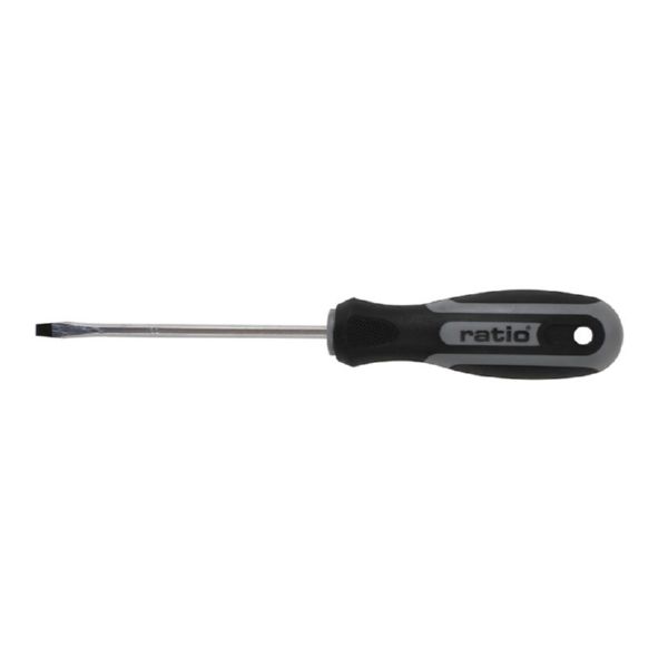 Varilla hexagonal. Acero cromo-vanadio S2. Punta magnética pavonada. Mango antideslizante bimaterial. Boca plana 0,8 x 4,0 x 100 mm.