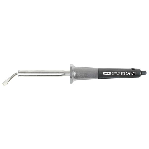 Normativa CE, 230 V - 50 Hz. Incluye rollito de estaño 10 gr, 2 puntas (recta y curva) y soporte metálico. Mango con zona antideslizante. 40 W.