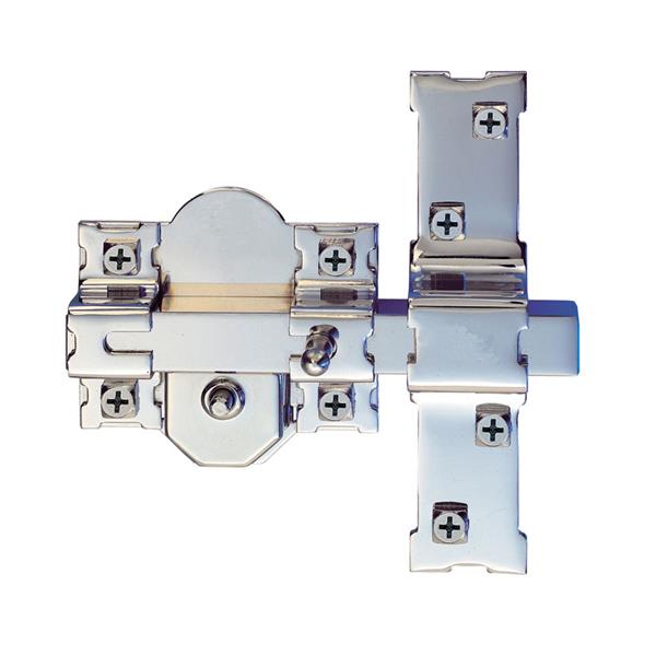 Llave exterior y botón interior. Barra de acero calibrado 18 mm. Placa acero 2 mm. Cerradero acero 3 mm. Bombillo 50 mm. Niquelado.