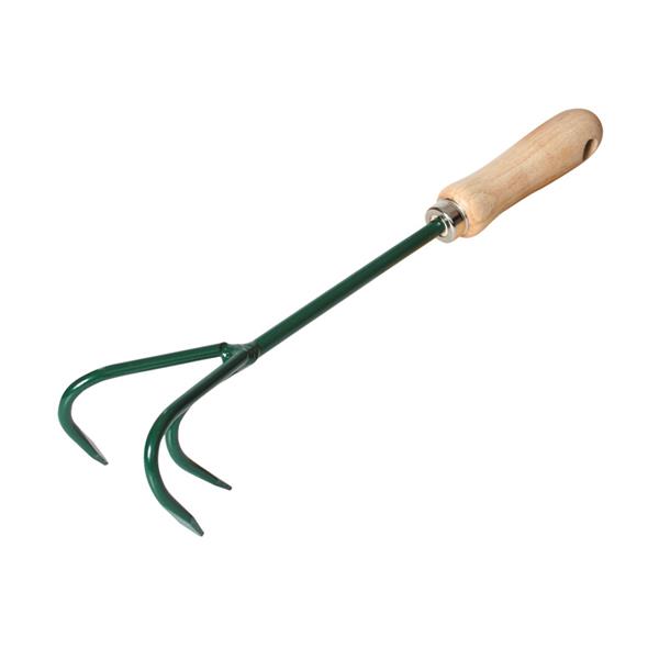 Acero alta calidad pintado epoxi. Mango madera barnizada fijado con virola metálica. 2. Escarificador. 330 x 70 mm.