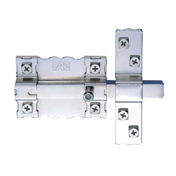 Sin llave. Colocación derecha, izquierda o vertical indistintamente. Barra de acero calibrado 14 mm. Placa de acero 2 mm. Cerradero en acero 3 mm. Niquelado.