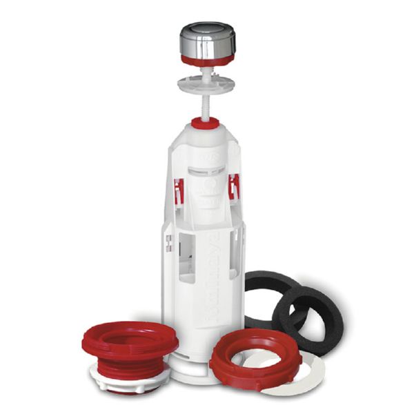 Tanque bajo. Mecanismo universal con descarga regulable de agua. Acoplable prácticamente a todas las cisternas. Adaptador a base cisternas Roca. Transmisión directa Descarga simple 6-9 litros Compatible con base negra Roca