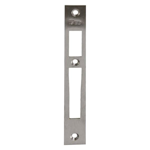 Para cerraduras de palanca y resbalón, palanca y rodillo y desviadores y palanca eléctrica. con manilla con cilindro de perfil europeo y de doble paletón embutir. Para serie 96. Acero inoxidable. 180x24x3 mm.