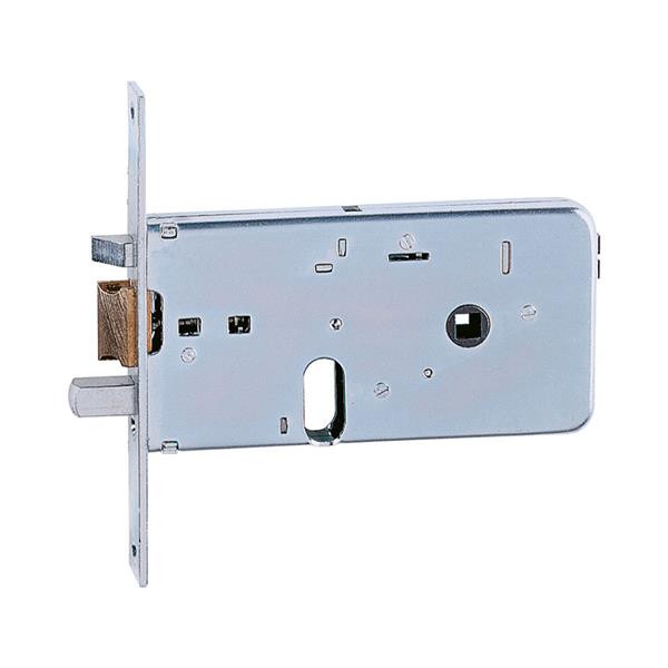 Para zócalo con cilindro oval. 12V AC. Frente 160 x 20 x 3 cincado. 2 vueltas de llave.. Resbalón autoblocante con pistón de carga y palanca. 60 mm.