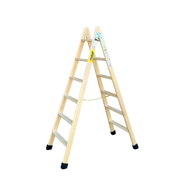 Especial pintores y electricistas. Peldaños anchos 6 cm. Montantes sección piramidal. Sistema cinta antiapertura. Incluye tacos goma antideslizantes. Gancho auxiliar. Peso máximo 150 kg. 6 Peldaños.