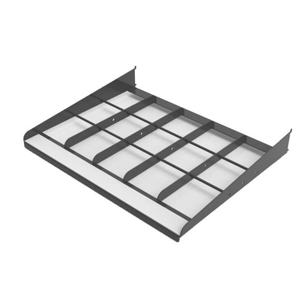 Anclaje universal sobre panel perforado de 25 mm. Especial para elementos voluminosos, barras cortina, varilla roscada, fluorescentes, etc. Con 2 barras separadoras para ubicar, 5, 10 o 15 referencias. Rejilla 50x30 cm.