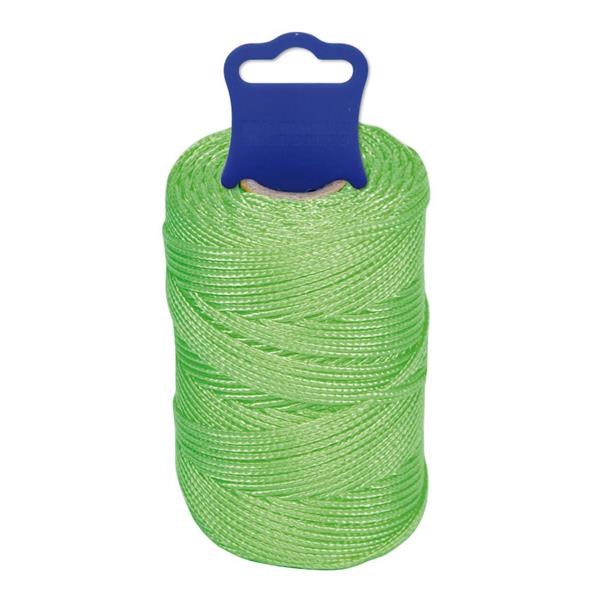 Bobina. Poliéster multifilamento de alta tenacidad protección solar. Fibra suave y flexible, con excelente resistencia a la tracción y al rozamiento, excelente anudabilidad, gran visibilidad. Aplicaciones: Efectos navales, albañilería, jardinería, horticultura, bricolaje, manualidades, paquetería, deporte. ø 1,8 mm x 100 m. Verde.