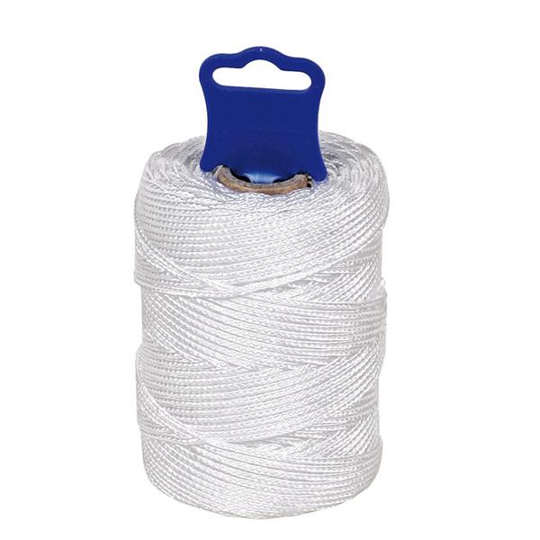 Hilo trenzado. Polipropileno multifilamento de alta tenacidad, protección solar. Fibra suave y flexible, muy ligera, posee flotabilidad con gran resistencia a la tracción, buena anudabilidad, resistente a la mayoría de los ácidos. Aplicaciones: Albañilería, jardinería, horticultura, bricolaje, manualidades, paquetería, deporte, etc. ø 1,8 mm x 500 m. Blanco.