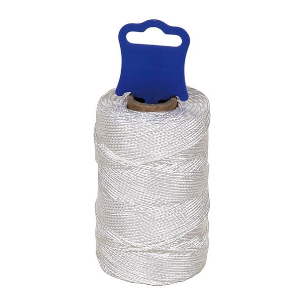 Bobina. Color blanco. Hilo trenzado. Poliamida multifilamento de alta tenacidad protección solar. Fibra suave y flexible, con gran resistencia a la tracción y al rozamiento, excelente anudabilidad. Aplicaciones: Efectos navales, albañilería, jardinería, horticultura, bricolaje, manualidades, paquetería, deporte. ø 1,3 mm x 200 m.