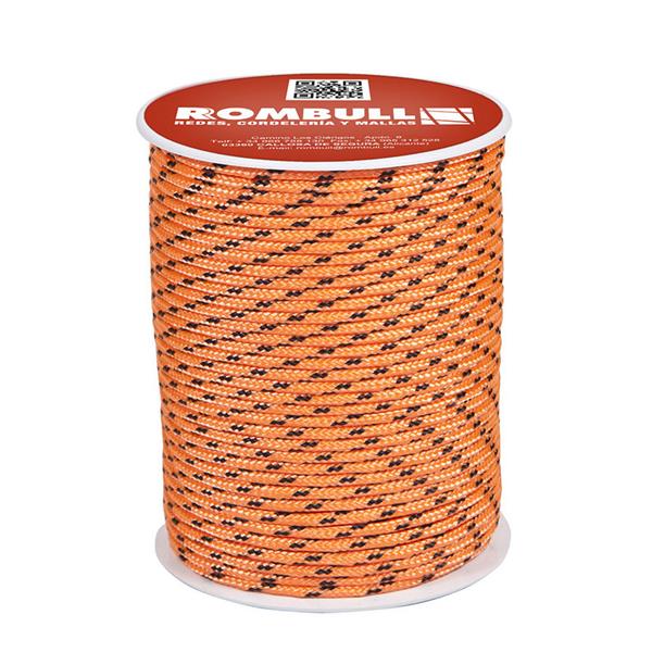Bobina. Camisa poliéster alta tenacidad, interior material textil trenzada con alma. Cordón con mucha variedad de colores, flexibles, muy suaves y con gran resistencia. Aplicaciones: Decoración, juguetería, trabajos manuales,pulseras, pancartas, bricolaje. ø 4 mm x 60 m. Naranja.