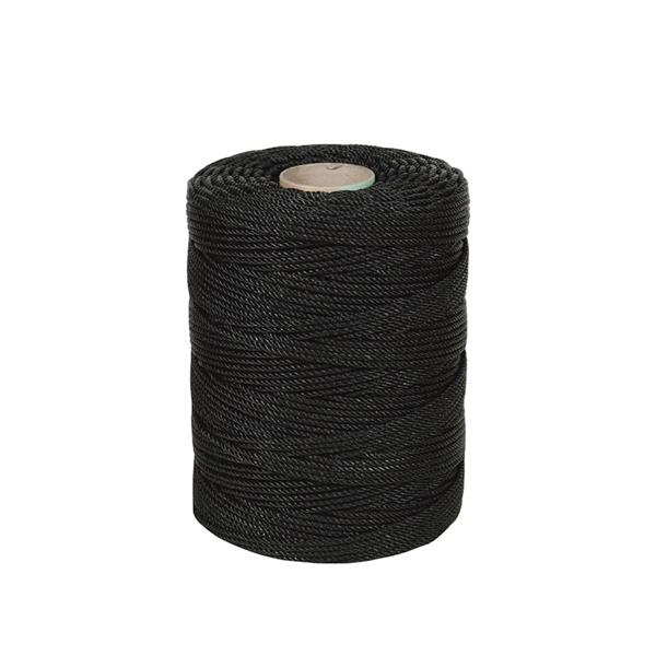 Bobina. color negro. Monofilamentos de polietileno torcidos a 3 cabos. Cuerda flexible, no absorbe agua, de reducida elasticidad, flota en el agua, desliza con facilidad sobre cualquier superficie. Aplicaciones: Guía para pasar cables telefónicos y eléctricos. ø 4 mm x 500 m.