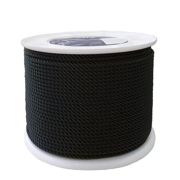 Cuerda compuesta de camisa trenzada y alma de cordón trenzado. Compuesto anti-UVA. Color flúor. Aplicaciones: deportes, seguridad náutica, driza mayor para barcos, etc. Bobinas. ø 6 mm x 100 m. Negro.