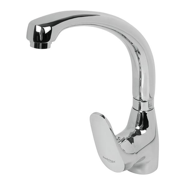 Latón cromado. Cartucho cerámico ø 40 mm. Fregadero vertical. Caño giratorio fundido.