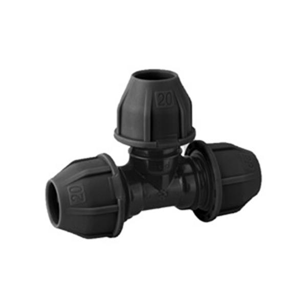 Accesorios de presión para tuberías PE. Etiquetado con código EAN individual. Según normas UNE-EN 712 y EN 715. Te igual 25 mm.
