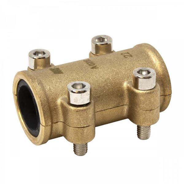 Abrazadera tapaporos para tuber?a de cobre, galvanizada e inoxidable. Cuerpo reforzado fabricado en lat?n. Soporta una presi?n nominal de 16 bar y admite una temperatura de trabajo de entre -20?C y 120?C. Permite reparar fugas sin necesidad de hacer soldaduras ni cortar el tubo. 15 mm.