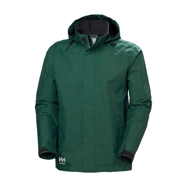 Tejido principal: 100 % poli?ster de 255 g/m?. Dise?o totalmente sellado. Capucha extra?ble. Detalles reflectantes. EN 343:2019 clase 3,4. Color verde oscuro. Talla M.