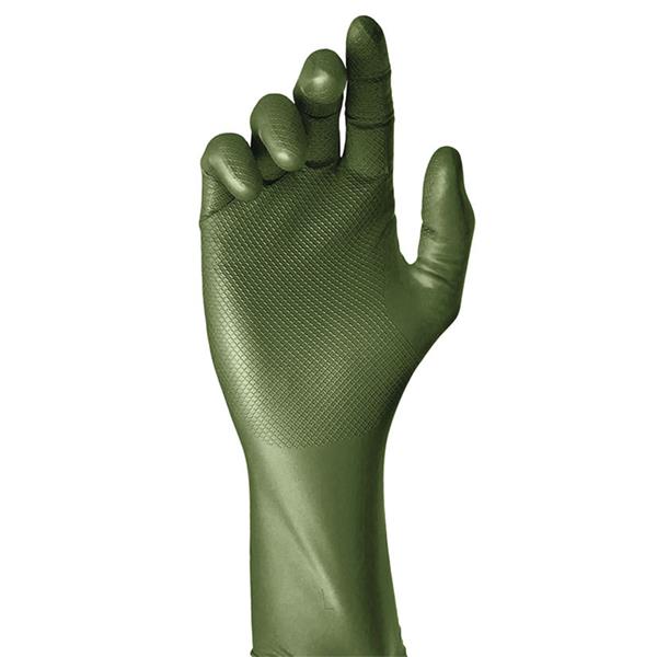 Guante desechable nitrilo sin polvo. Color verde. Ambidiestro. Espesor: 0,15 mm. Largo: 24 cm. Usos: jardinería, agricultura, horticultura, huerto urbano, etc. Se sirven en cajas con 50 unid. Talla 10. 50 unid.