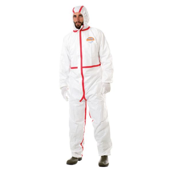 Con capucha, cierre frontal de cremallera con tapeta adhesiva. Ajuste elástico en capucha, cintura,. puños y tobillos. Sujeta-dedos en mangas y cubre-barbilla. Material 55% polipropileno (SP) y. 45 % polietileno (film microporoso). 60 g/m2. Riesgo qu Talla XL.