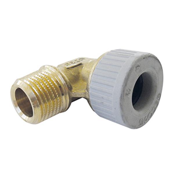 Accesorios a compresi?n de polibutileno para instalaciones hidrosanitarias con sistema de uni?n a compresi?n Push Fitting. Codo trans M. 22 mm. - 3/2"