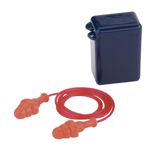 Termoplástico TPR hipoalergénico, de atenuación media (25dB). Tapones lavables, suaves y de gran comodidad. Cordón de seguridad para evitar pérdidas y facilitar su uso. Protector auditivo dieléctrico, sin componentes mecánicos (Metal-free). Su estruc SNR= 25dB (H=25, M=22, L=21)