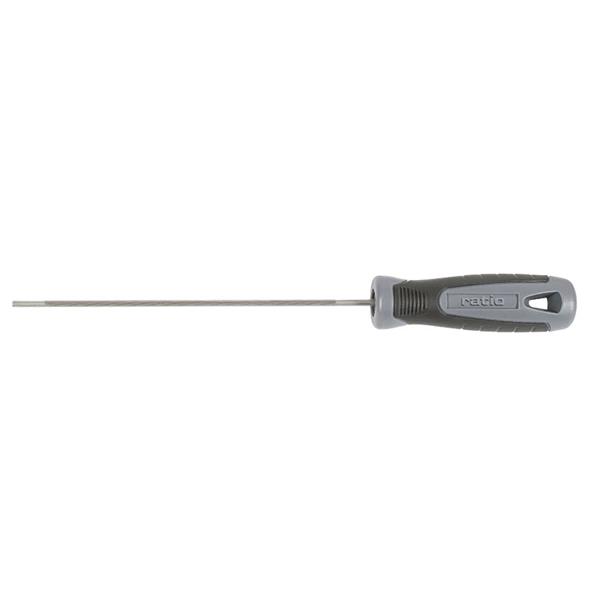 Limas redondas, doble picado y entrefinas, corte espiral. Con mango individual bimaterial antideslizante. ø 4.0 mm. x 8".
