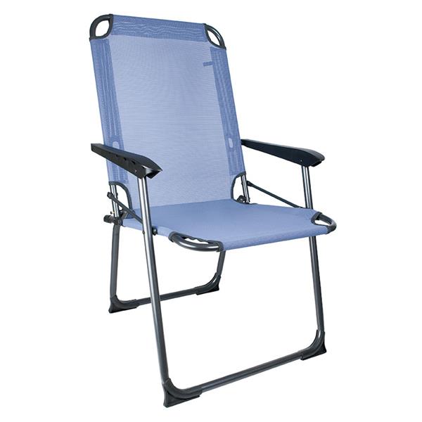 Estructura de aluminio pintado gris oscuro. Asiento y respaldo en textilene color azul. Medidas sillón: 58x68xh.95 cm. Medida plegado: 58x8xh.71 cm. Medida asiento: 48,5x45,5 cm. Altura brazos: h.58 cm. Altura asiento: h.43 cm.