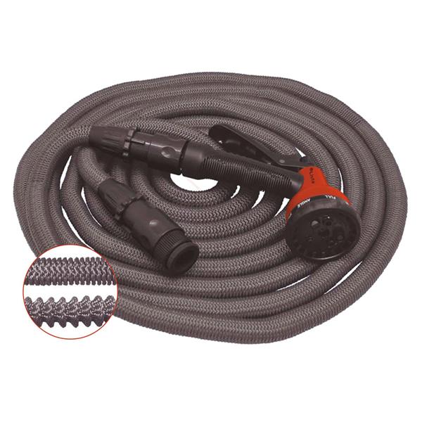 Presion de 8 Bar. No hace nudos.Los enlaces son antirotura. Incluye pistola de 8 funciones, 2 enlaces r?pidos y adaptador de grifo. 7,5 m.