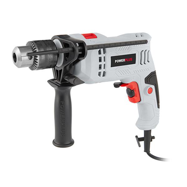 Empu?adura auxiliar de dos posiciones. Ajuste de velocidad variable. Boton de bloqueo. Tope de profundidad met?lico. Potencia: 550 W. rmp: 3000. imp m?x.: 48000. Taladro m?x. acero: ? 10 mm. Taladro m?x. madera: ? 13 mm. Taladro m?x. hormig?n: ? 6 mm. Peso: 1,8 kg.