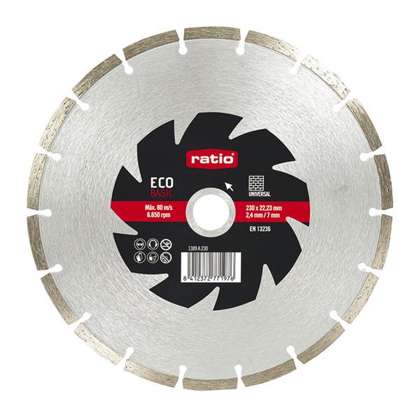 {imagen-envio-gratis-pdf} {imagen-outlet-pdf} {imagen-oferta-pdf} DISCO SEGMEN.UNIV.ECO 230MM.RATIO Ref: 1389A230 EAN: 8412372771976 24.61€IVA incluido Envio en 24/48 horas Calidad y garantía Pago 100% seguro Garantía de devolución {enviar-amigo-pdf} {imprimir-pdf-pdf} Stock: Unidades de caja: 1.00 ¿Necesitas ayuda?967 141 344 Estaremos encantados de atenderte en lo que necesites. características Láser segmentado. Uso general en materiales de construcción. ø 230x2,4x22,23 mm.